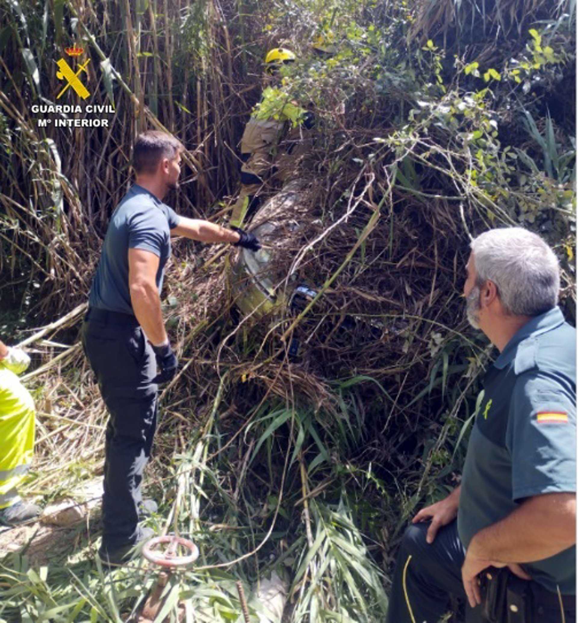 Vehículo atrapado en la maleza tras precipitarse unos 30 metros por un barranco en Purchena (Almería). - GUARDIA CIVIL