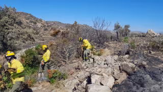 Bomberos forestales trabajan en la extinción del incendio forestal de Lubrín (Almería). - INFOCA