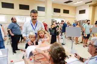 El consejero de Sostenibilidad, Medio Ambiente y Economía azul y portavoz de la Junta, Ramón Fernández-Pacheco, ejerce su derecho al voto en el colegio Freinet de Almería - PP ALMERÍA