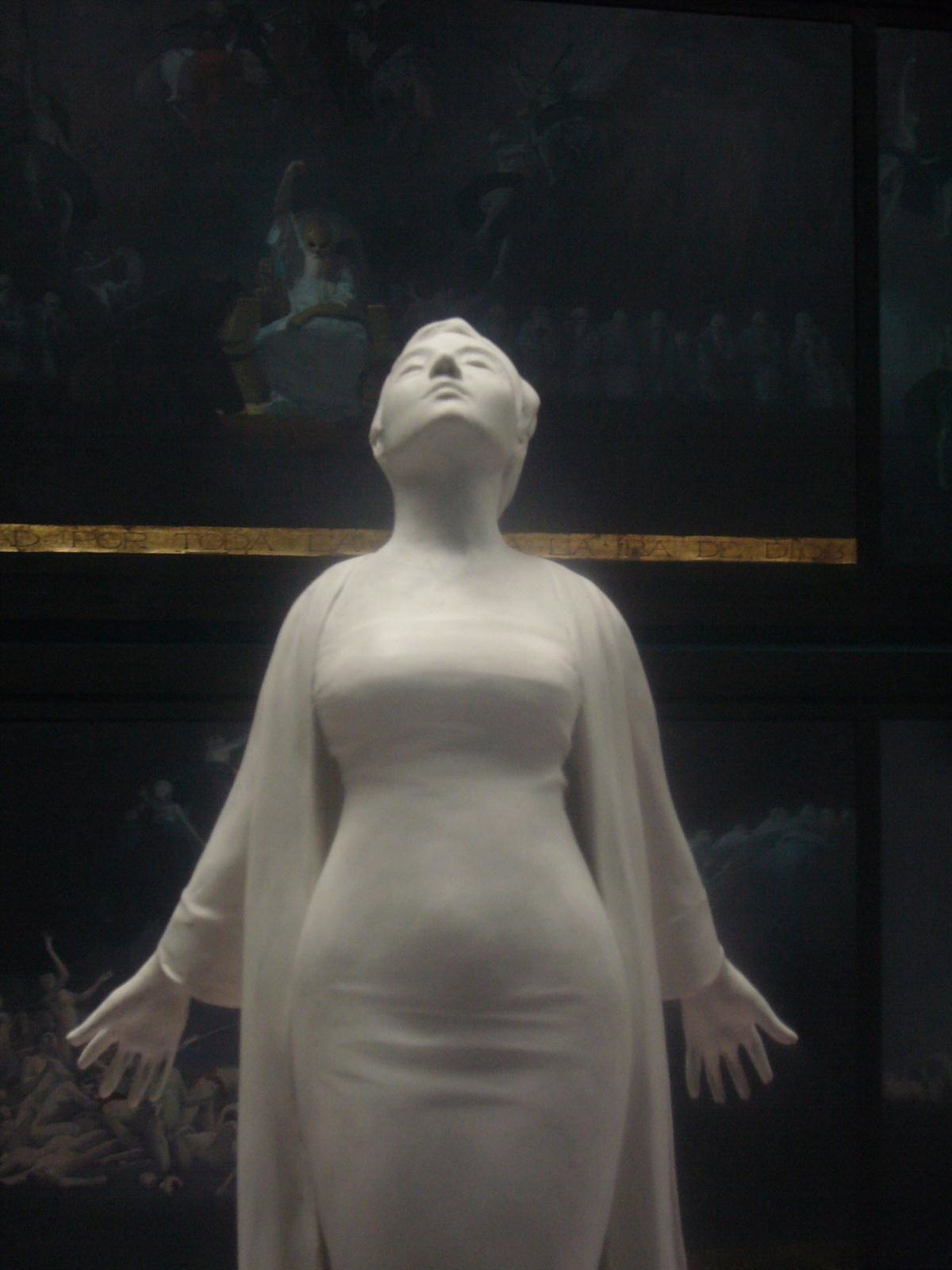 El artista la ha modelado en pequeño tamaño, de unos cincuenta centímetros, como paso previo a la realización definitiva en piedra. La figura representa a una mujer en plenitud de frente, con los brazos extendidos y mostrando las palmas de las manos. Levanta su cabeza al cielo al tiempo que parece querer iniciar una especie de ascensión.