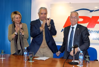 La reunión ha contado con la presencia de Javier Arenas, hijo adoptivo de Roquetas de Mar, quien confesó que "no quería perderse ese momento" y sorprendió a Amat con su presencia.