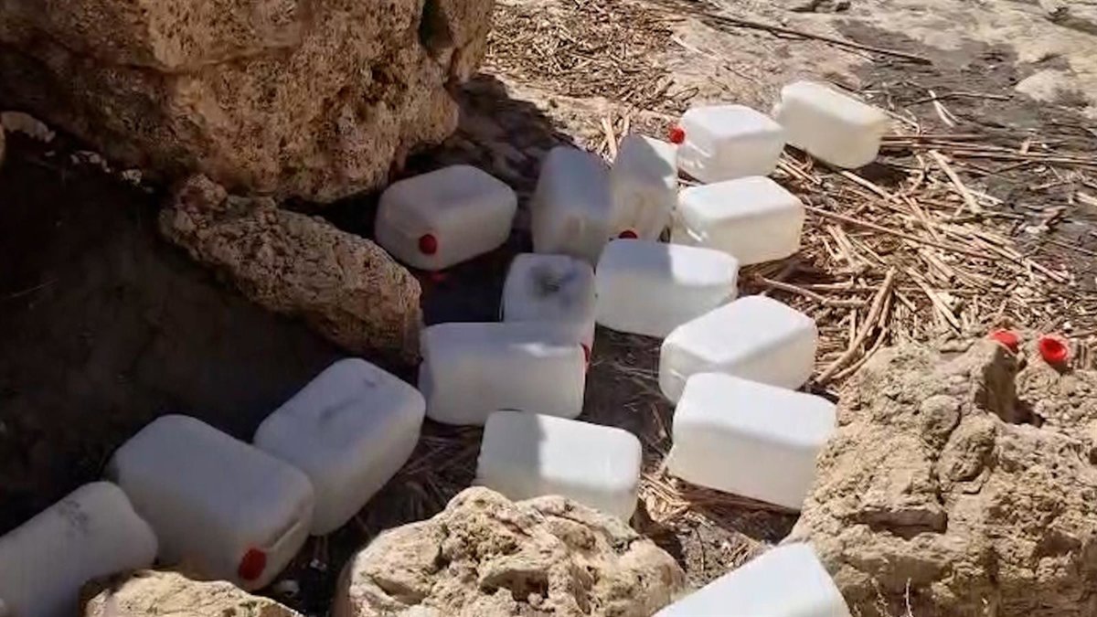 Garrafas de combustible abandonadas procedentes de narcolanchas ensucian calas, a 1 de abril de 2026, entre Agua Amarga y Carboneras, Almería, Andalucía (España). - Europa Press TV - Europa Press