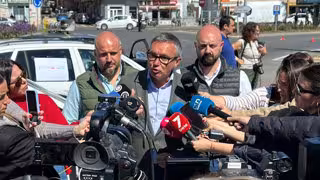 El portavoz de Vox en el Parlamento andaluz, Manuel Gavira, atiende a los medios en Almería. - VOX
