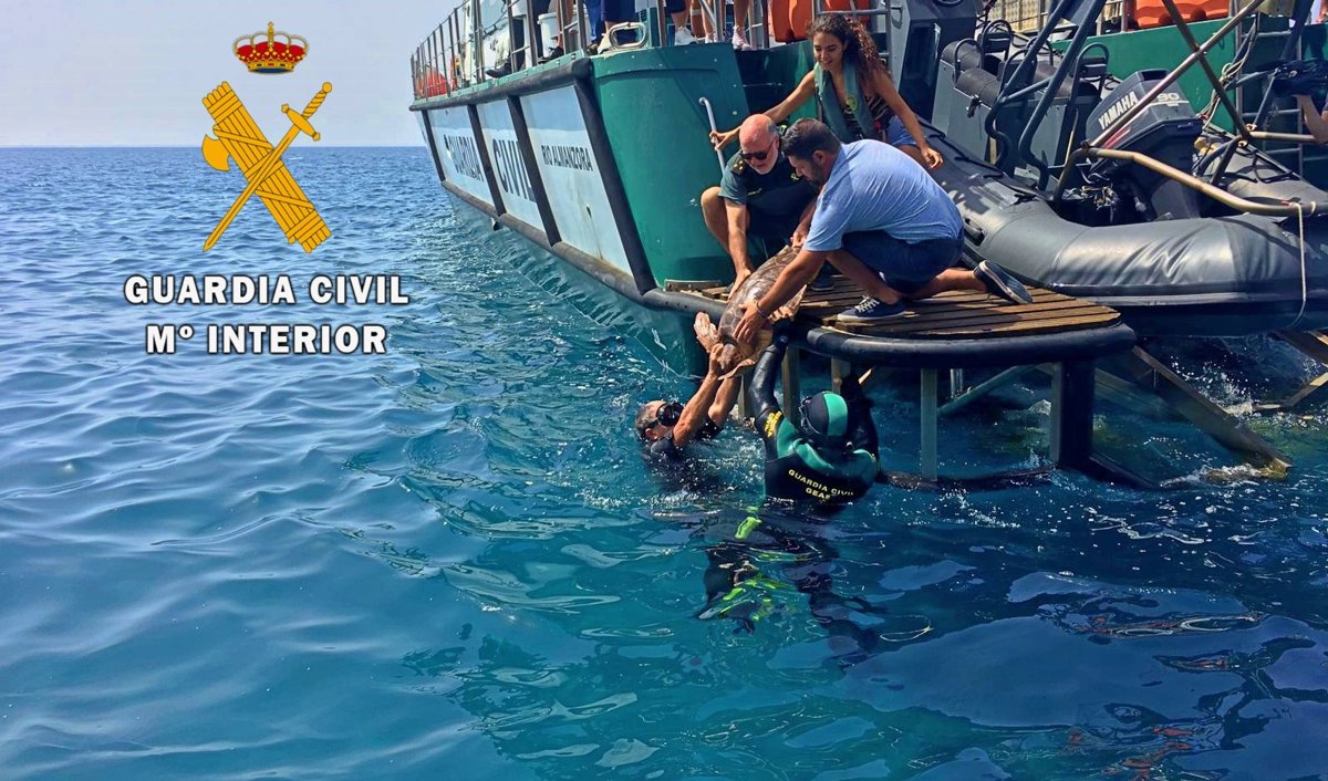 La Guardia Civil ha devuelto este viernes al mar a un ejemplar de tortuga 'boba' (Caretta Caretta) que fue rescatado en "muy malas condiciciones" debido a la ingesta de plástico.