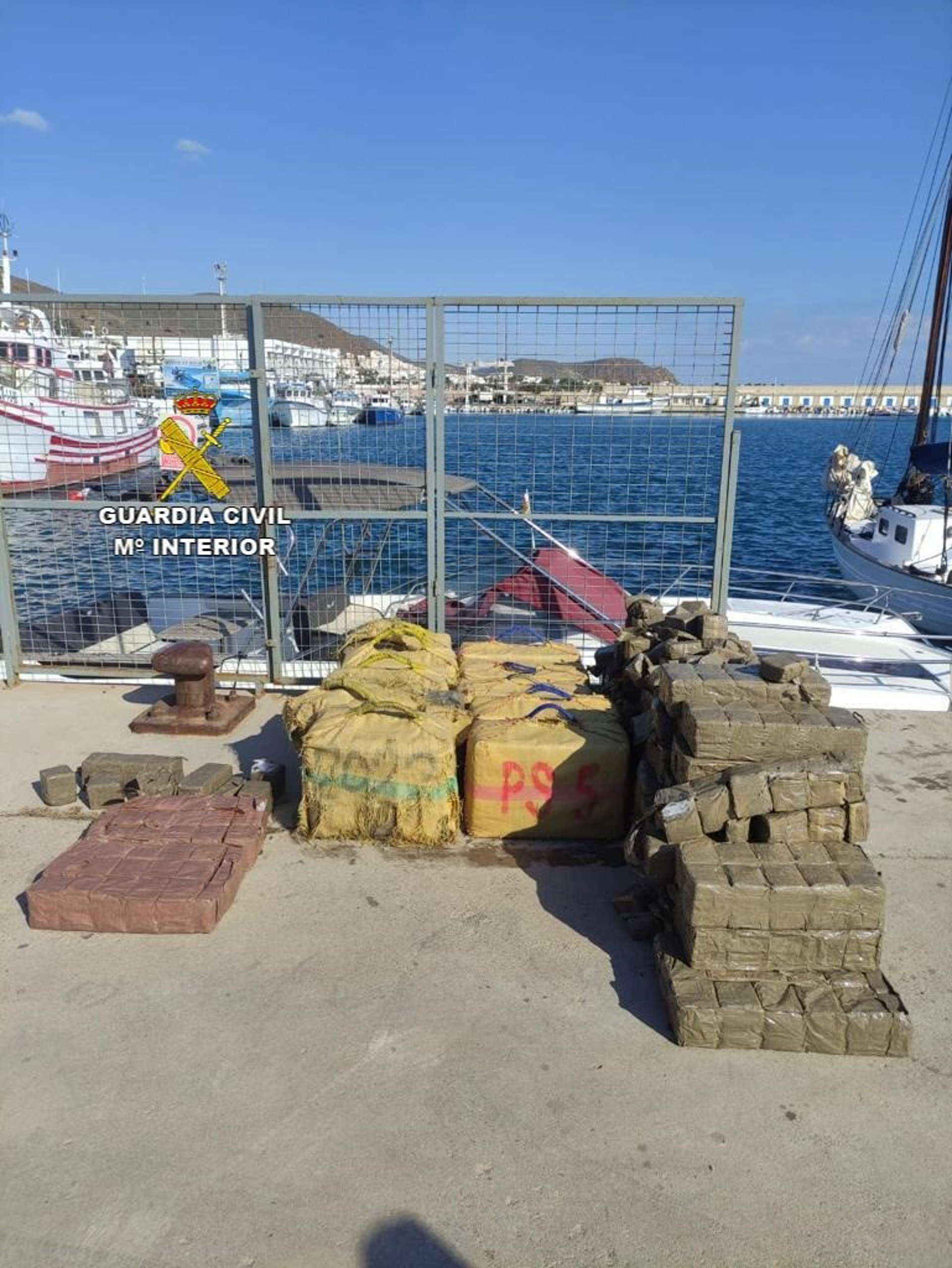 La Guardia Civil ha detenido a dos personas e incautado 773 kilogramos de hachís hallados en el doble fondo de una embarcación de recreo en Carboneras (Almería).