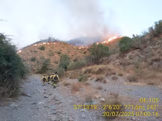 Este incendio, declarado este pasado sábado, reunió inicialmente hasta 16 aeronaves y 14 grupos de bomberos forestales, entre otros recursos desplegados por Infoca.