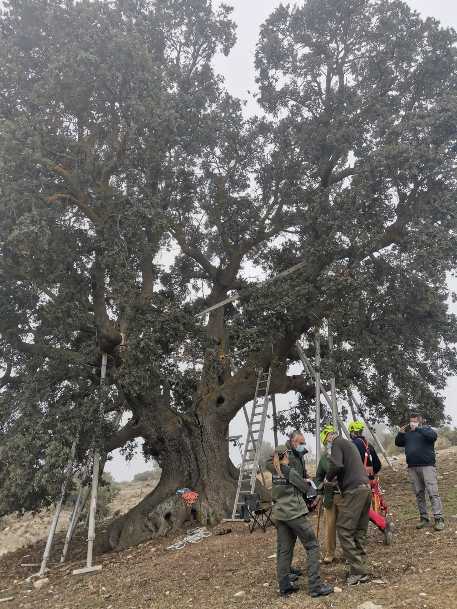 Archivo - Trabajos en la encina milenaria 'La Peana' de Serón (Almería) - ASOCIACIÓN LA PEANA - Archivo