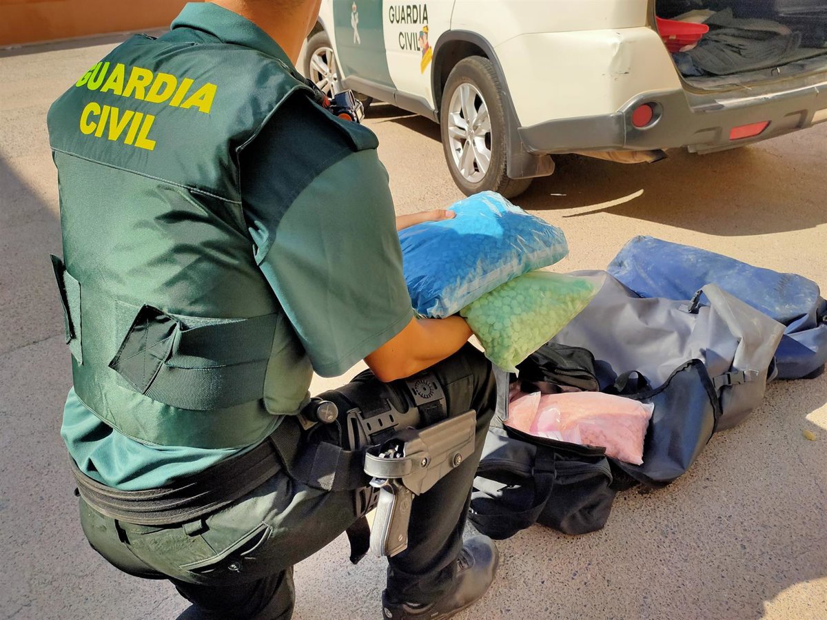 La Guardia Civil ha interceptado una embarcación de recreo que transportaba 46 kilogramos de pastillas de éxtasis y MDMA y ha detenido a los cuatro tripulantes de la lancha en el puerto de Roquetas de Mar (Almería)