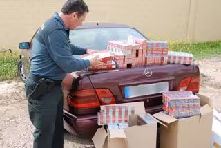 Una vez identificados, se ejecuta un registro del interior del vehículo, en el que localizaron un total 1.280 cajetillas de tabaco de procedencia extranjera y sin precinta, de diferentes marcas, ocultas en tres cajas dentro del maletero, incluso en el hueco de la rueda de repuesto del turismo, por lo que procedieron a su incautación.