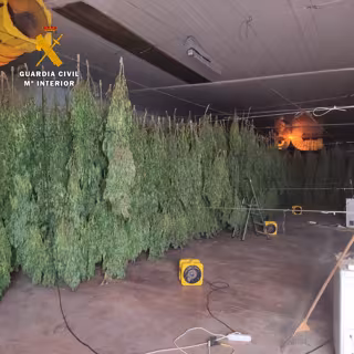 Según ha detallado la Guardia Civil en un comunicado, además, durante las inspecciones hallaron otra finca destinada como secadero con las plantas de cannabis ya cortadas y colgadas al revés en los alambres para su secado.