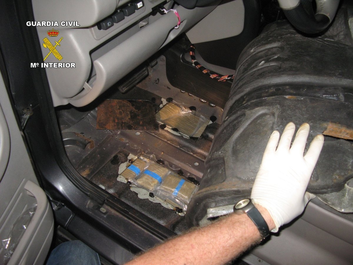 Al realizar una inspección del vehículo todoterreno, los agentes localizaron 80 paquetes de distintos tamaños ocultos en un doble fondo practicado en el maletero y otros 254 fardos en los bajos del vehículo, bajo los asientos del conductor y del copiloto.