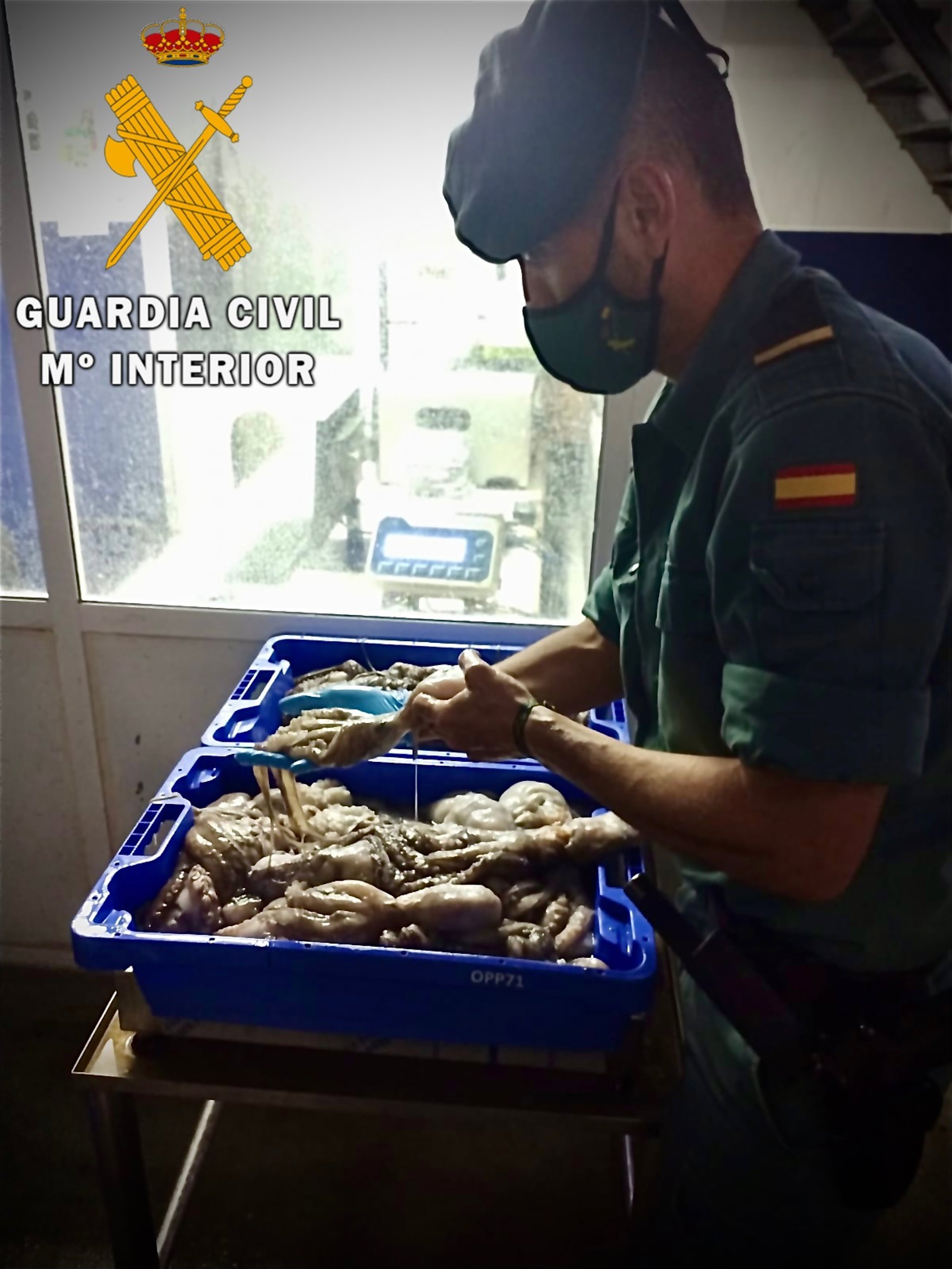 Un agente manipula el pulpo inmaduro decomisado por carecer de control sanitario - GC