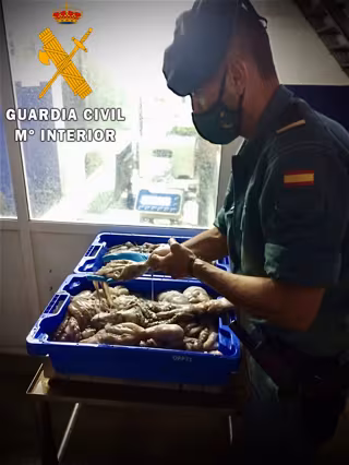 La Guardia Civil ha decomisado casi 30 kilos de pulpo inmaduro y sin control sanitario en un restaurante de la capital y ha intervenido 100 kilos de pescado capturado con artes prohibidas en una embarcación de recreo interceptada en el puerto de Aguadulce, en Roquetas de Mar.