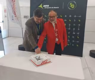 Los pasajeros del primer vuelo a Bristol han sido recibidos con una tarta conmemorativa para brindar un desayuno especial en el vestíbulo de facturación, donde se han celebrado los cinco años que esta compañía aérea lleva operando en las instalaciones de El Alquián, según ha indicado Aena en una nota.