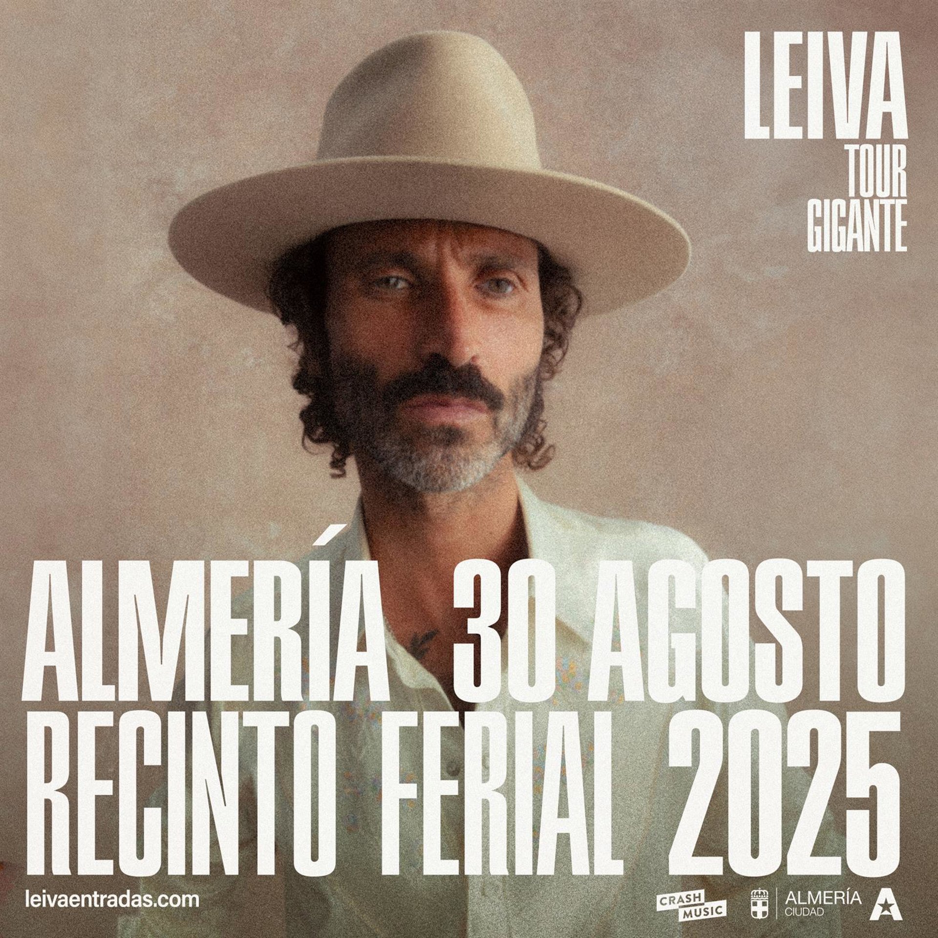 Las entradas para Tour Gigante 2025 y para el concierto en Almería estarán disponibles a la venta general en https://leivaentradas.com/ a partir del miércoles 27 de noviembre a las 12,00 horas.
