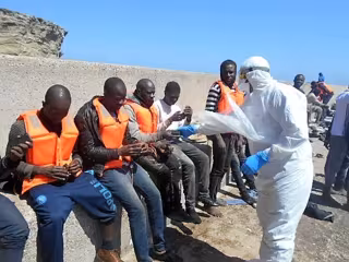 Con ello, a las 13,50 horas la patera llegaba a motor a la bocana del muelle de levante, lugar en el que se ayudó a los inmigrantes a desembarcar al tiempo que se comprobaba el buen estado de salud de todos ellos.