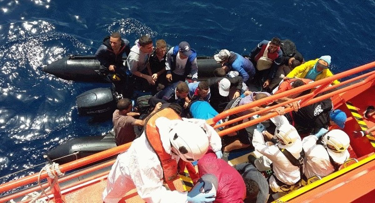 Salvamento Marítimo ha activado al helicóptero Helimer 202 y a la Guardamar Polimnia, que ha procedido al rescate de los ocupantes de la patera, en aparente buen estado de salud, a las 12,30 horas.
