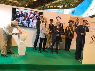 Macael ha vuelto a presentar esta actividad en el marco de Fitur, la Feria Internacional de Turismo de Madrid, coincidiendo con el Día de la Provincia en el stand de 'Costa de Almería'. El alcalde, Raúl Martínez, ha sido el encargado de realizar la presentación, en la que ha estado arropado por el presidente de la Diputación Provincial, Gabriel Amat, el delegado territorial de Turismo, Alfredo Valdivia, el maestro escultor de Macael, Paco Alías, quien ha estado tallando la piedra durante el acto, y por un grupo de vecinos ataviados de época.