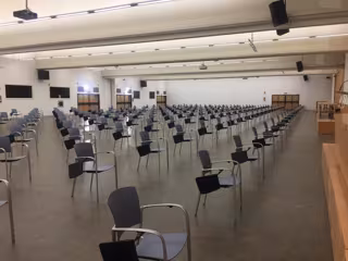 En el banquillo se sientan medio centenar de acusados con sus respectivas defensas, más las acusaciones, "por ello era necesario buscar un lugar alternativo al edificio de la Audiencia Provincial porque ninguna de sus salas reúne las condiciones de espacio necesarias para poder acoger este juicio con las nuevas medidas de seguridad", ha señalado el delegado territorial de Justicia en la provincia, José Luis Delgado.
