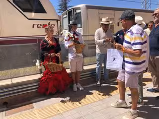 En total se han repartido unos 200 claveles que han sido "muy bien recibidos por los viajeros", unos "valientes" que, según la plataforma, "han tardado algo más de siete horas y 23 minutos en llegar hasta esta estación". El acto ha contado con la música del grupo de teatro almeriense ABBA, que ha amenizado la llegada de los viajeros.