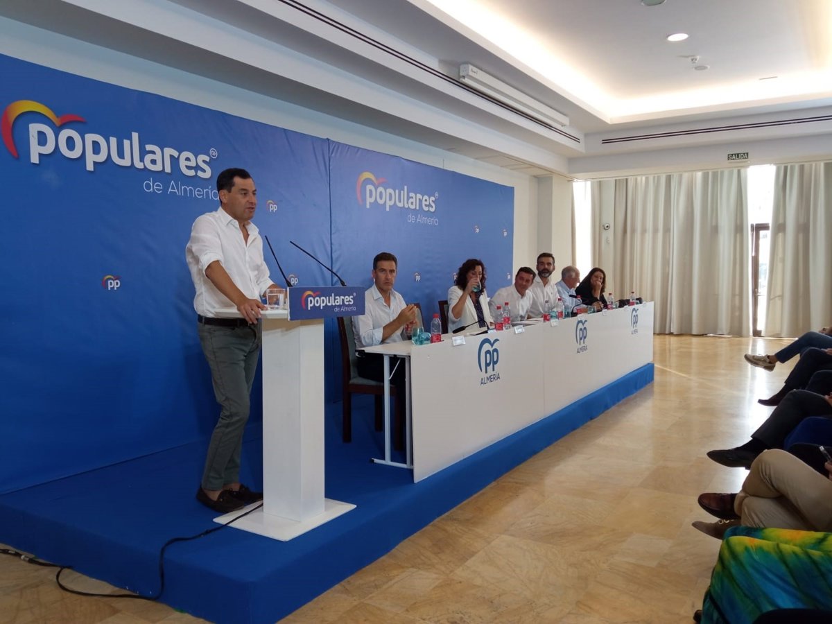 El presidente del PP-A, Juanma Moreno, interviene en la junta directiva provincial del PP de Almería. - EUROPA PRESS