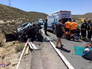 Fuentes del servicio unificado de emergencias 112 Andalucía y de Bomberos del Levante han indicado a Europa Press que el siniestro ha tenido lugar en torno a las 15,00 horas, cuando se ha recibido un aviso por el accidente de tráfico en el que se alertaba de que había al menos dos personas heridas y atrapadas.