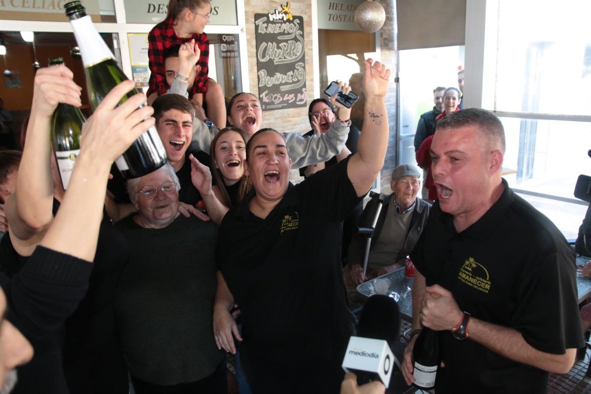 La alegría se ha desatado este jueves en la churrería Amanecer de Roquetas de Mar (Almería) cuando, entre el ruido de la máquina de café y el bullicio de la clientela, María José, Sonia y Ana han empezado a gritarle al televisor al comprobar que llevaban un décimo compartido del 5.490, el número premiado con El Gordo en el Sorteo Extraordinario de Navidad y que ellas reconocen como 'el papica', en recuerdo al abuelo de una ellas.