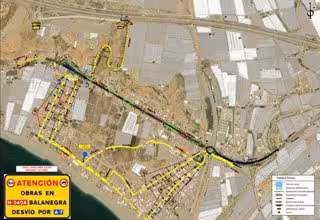Será a partir de las 8,00 horas del próximo lunes cuando se producirá el corte de la N-340A entre los kilómetros 398,350 y 399,800 en sentido de circulación hacia Almería, con desvíos provisionales y con el sentido hacia Adra por la actual calzada con las correspondientes restricciones de velocidad y maniobrabilidad propias de una zona de obras.