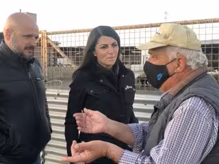 El portavoz adjunto de Vox en el Parlamento de Andalucía, Rodrigo Alonso, y la portavoz adjunta de Vox en el Congreso, Macarena Olona, escuchan este jueves en Almería a un ganadero. - TWITTER VOX ALMERÍA