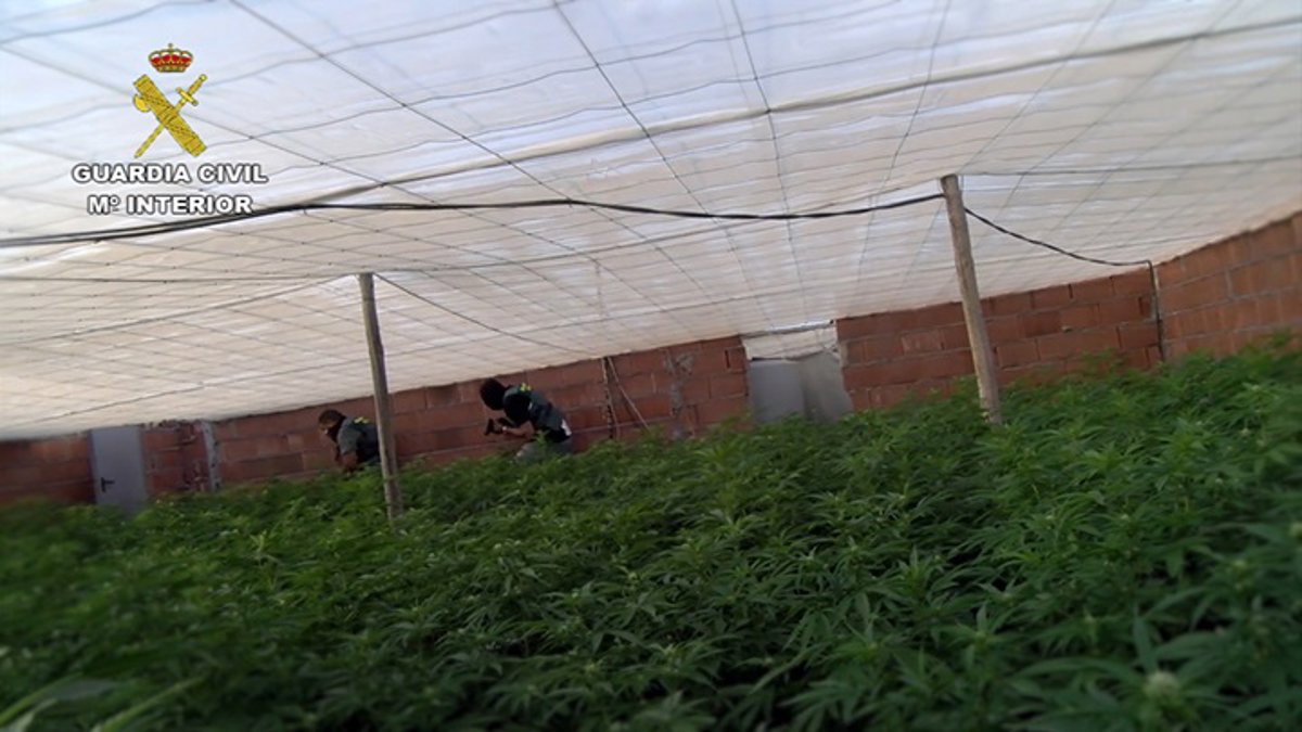 "Al sobrevolar la zona podemos observar como --las viviendas-- no tienen tejado, sino un plástico de invernadero, y es un invernadero sobre la planta del domicilio", ha detallado en relación a la práctica empleada por los sospechosos de la zona, en la que una operación policial anterior había eliminado la mayor parte de las acometidas ilegales de electricidad que se habían evidenciado por la gran cantidad de consumo energético.