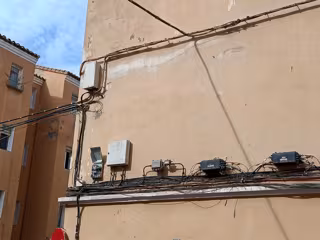 Cableado en la fachada de un edificio de Almería. - EUROPA PRESS