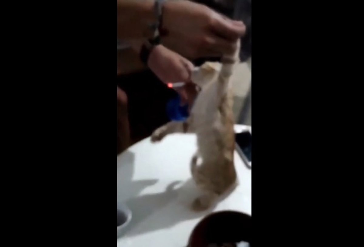 En concreto, según describe Pacma en una nota, los jóvenes "entre gritos y risas agarran de las patitas traseras a un gatito haciéndole caminar boca abajo con las delanteras sobre una mesa" y a continuación "le cogen de las patas delanteras y le introducen un cigarro encendido en la boca, forzándole a abrir la boca".