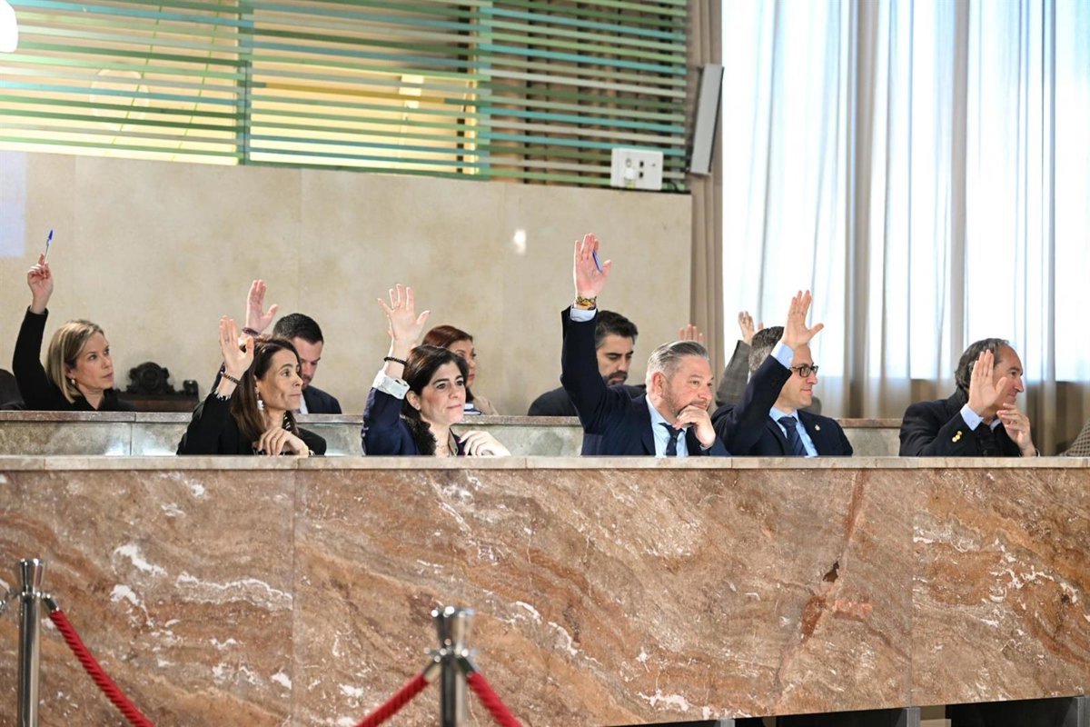 Los concejales del equipo de gobierno de Almería votan a favor de la tramitación del proyecto para la Ciudad Deportiva de la UD Almería en El Toyo, durante el Pleno del Ayuntamiento. - AYUNTAMIENTO DE ALMERÍA