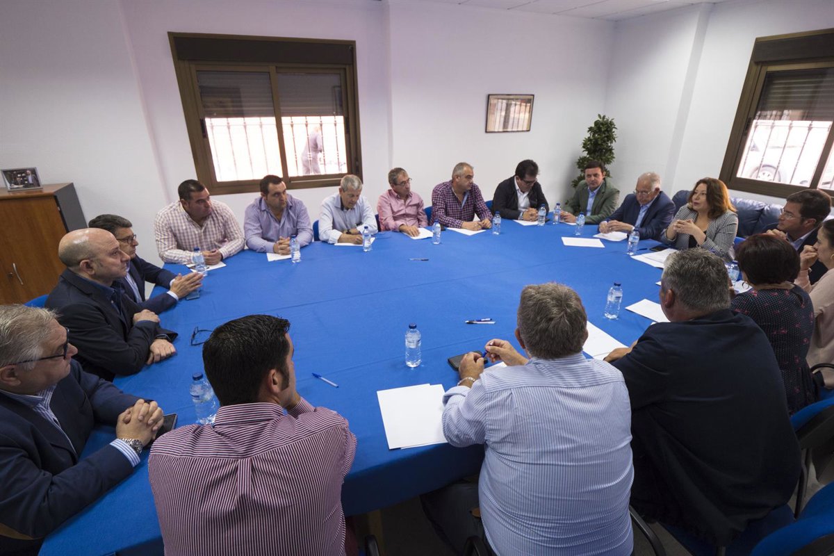 El presidente del PP de Almería, Gabriel Amat, junto a la consejera de Agricultura de la Junta, Carmen Crespo, la delegada de Agricultura, Aránzazu Martín, y los diputados nacionales Javier A. García y Juan José Matarí, han mantenido una reunión con agricultores de Asaja en la que han lamentado que el Gobierno haya aprobado una rebaja fiscal que "no beneficia a la mayoría" de los agricultores de la provincia y que lo hayan hecho "con nocturnidad y alevosía" justo después de las elecciones nacionales.