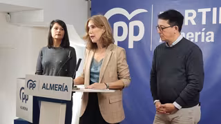 Los parlamentarios andaluces del PP por Almería Ángeles Martínez, Julia Ibáñez y Manuel Guzmán, durante la rueda de prensa. - PP
