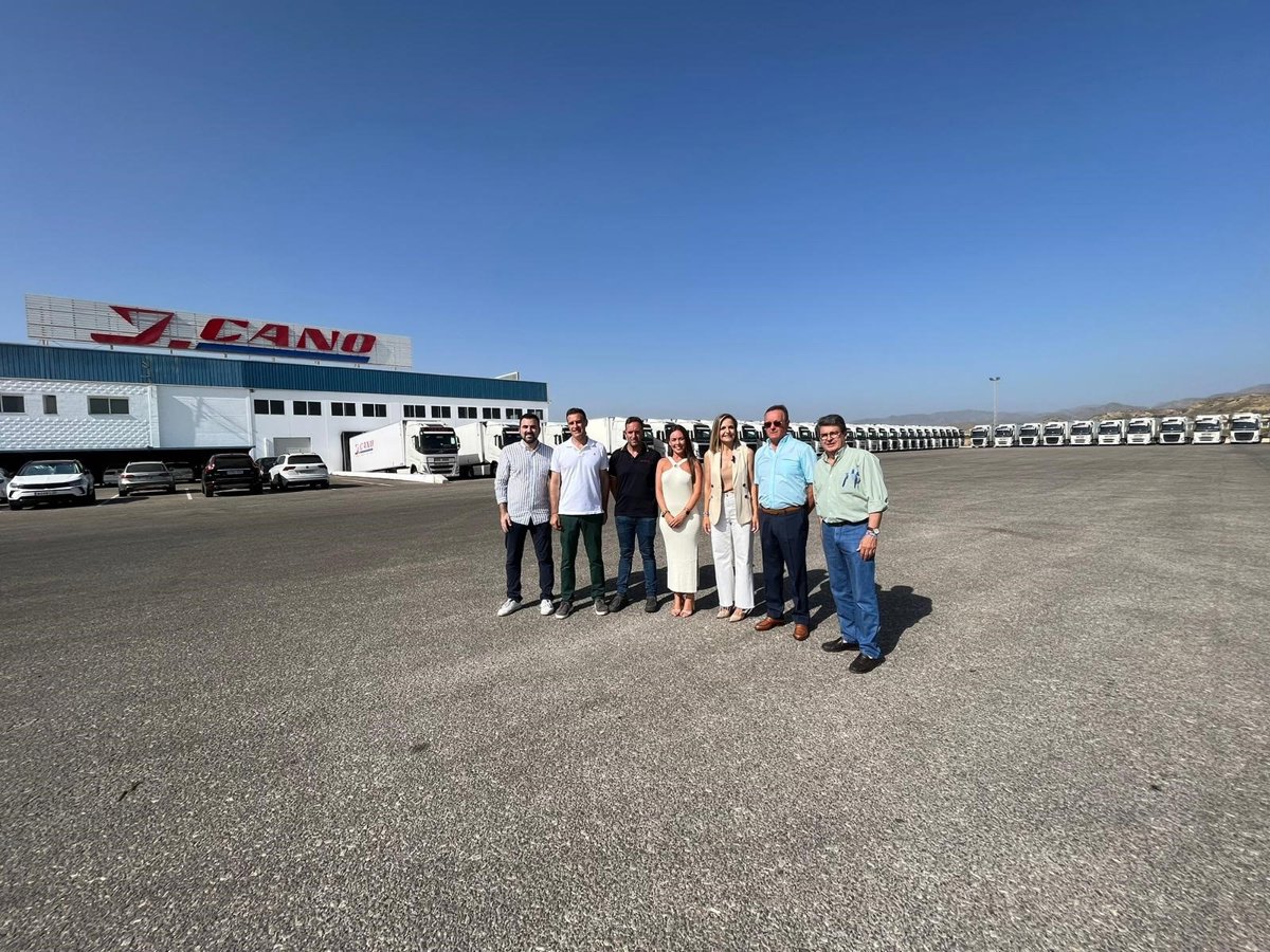 La candidata del PP al Congreso por la provincia de Almería Maribel S. Torregrosa, junto a los candidatos al Senado Miguel Ángel Castellón y Juan José Matarí, y el portavoz del PP en el Ayuntamiento de Antas, Juan de Dios Sola, han visitado este sábado la empresa de transportes J. Cano, ubicada en el polígono industrial antuso, desde donde han puesto en valor el "importante papel que desempeña el transporte por carretera" en la provincia, "la que más camiones tiene por población y que, además, lidera las exportaciones hortofrutícolas en España y las de piedra natural y yeso en Andalucía".