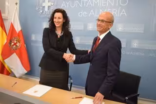 Este acuerdo ha sido suscrito entre ambos partidos con la participación del coordinador territorial de C's de Almería, Jesús Vicente Soler, y la teniente de alcalde y concejal delegada de Economía, María del Mar Vázquez (PP).