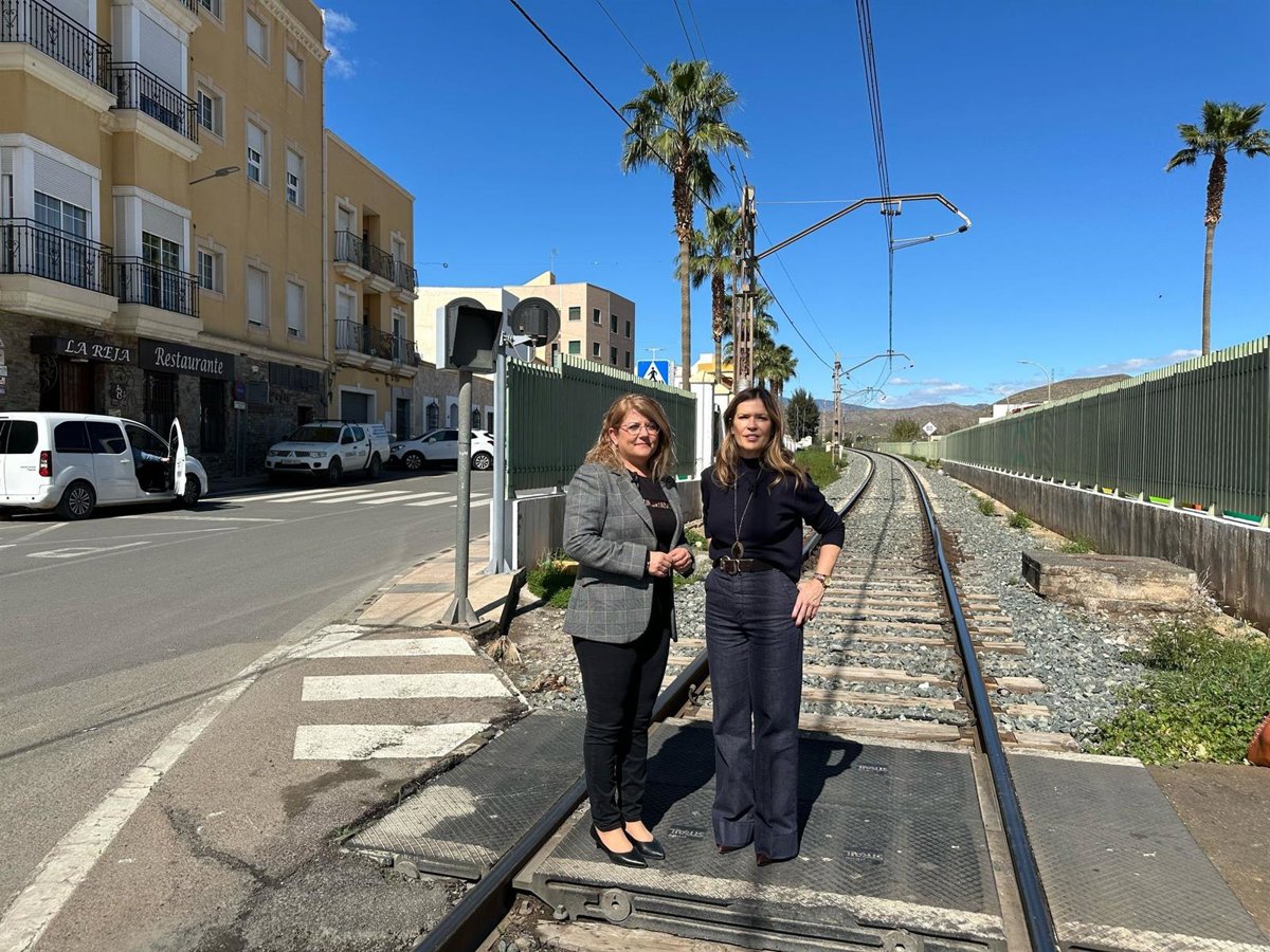 Lourdes Ramos y Ana Martínez Labella, junto a uno de los pasos a nivel de Gádor (Almería). - PP