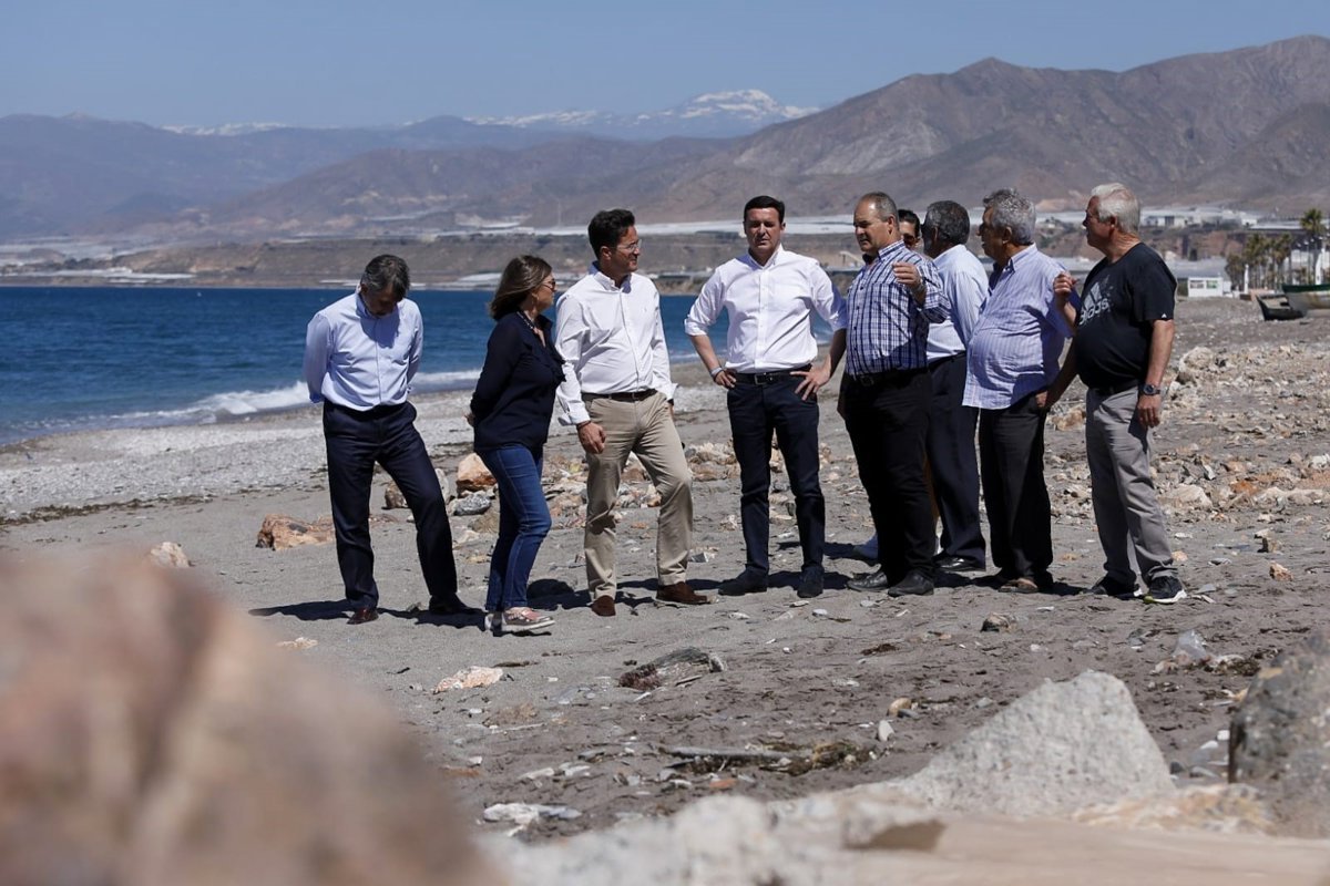 García ha visitado este martes la zona acompañado del alcalde del municipio, Francisco Góngora, y demás miembros de la corporación municipal, para comprobar el estado del arenal a poco más de mes del comienzo de la temporada estival.