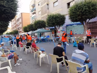 Personas esperan para participar en la campaña de test serológicos en El Ejido - MÉDICOS DEL MUNDO