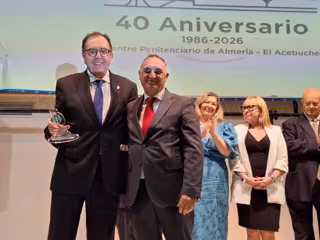 El secretario general de Instituciones Penitenciarias, Ángel Luis Ortiz, ha participado este miércoles en el acto conmemorativo del 40 aniversario del Centro Penitenciario El Acebuche, en Almería, donde se ha rendido homenaje a 41 funcionarios pioneros que participaron en la apertura de la prisión en 1986 y se ha reconocido la labor de los cuatro directores que ha tenido el centro desde su inauguración.
