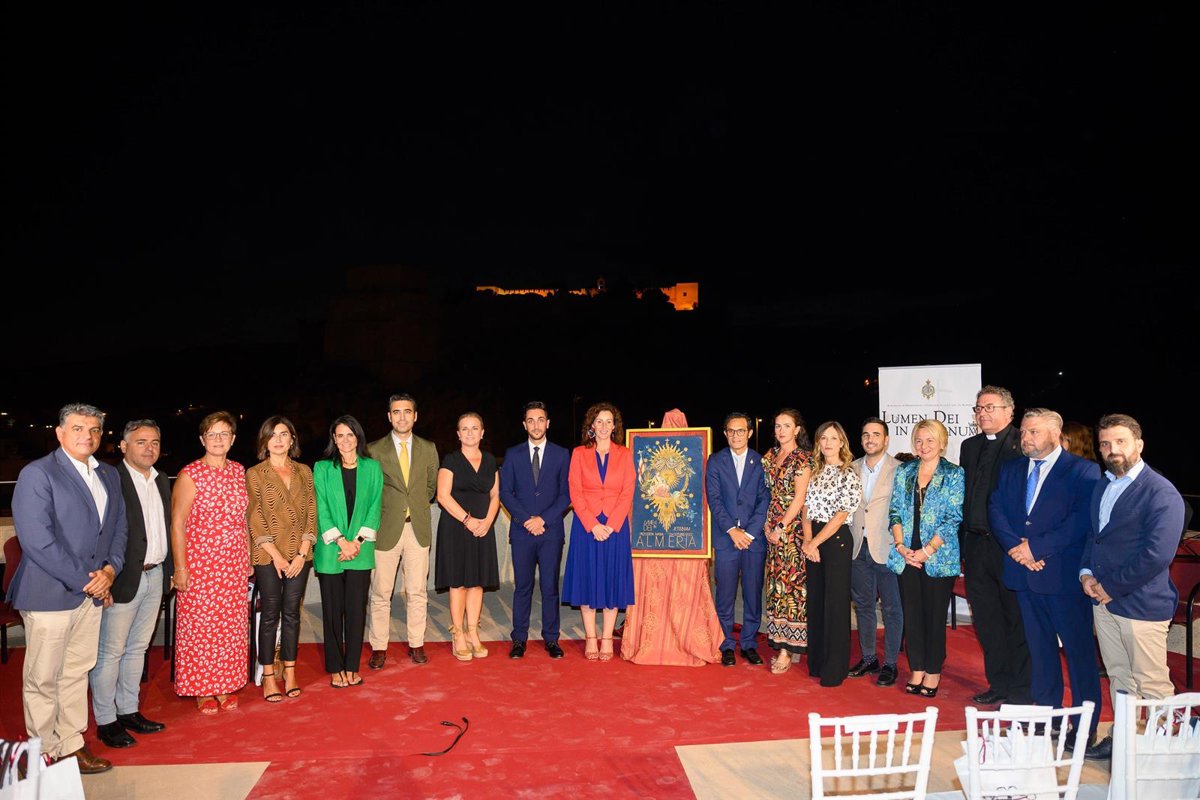 La terraza del Centro de Interpretación Patrimonial ha acogido en la noche de este viernes la puesta de largo de la procesión Magna de Almería, con la presentación del cartel oficial anunciador y de los próximos actos que celebrará la Agrupación de Hermandades y Cofradías de Almería en conmemoración de su 75 Aniversario Fundacional.