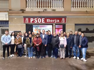 El secretario general del PSOE de Almería, José María Martín Fernández, junto a los secretarios generales de las agrupaciones locales y otros representantes socialistas de la comarca de Poniente, en Berja (Almería). - PSOE