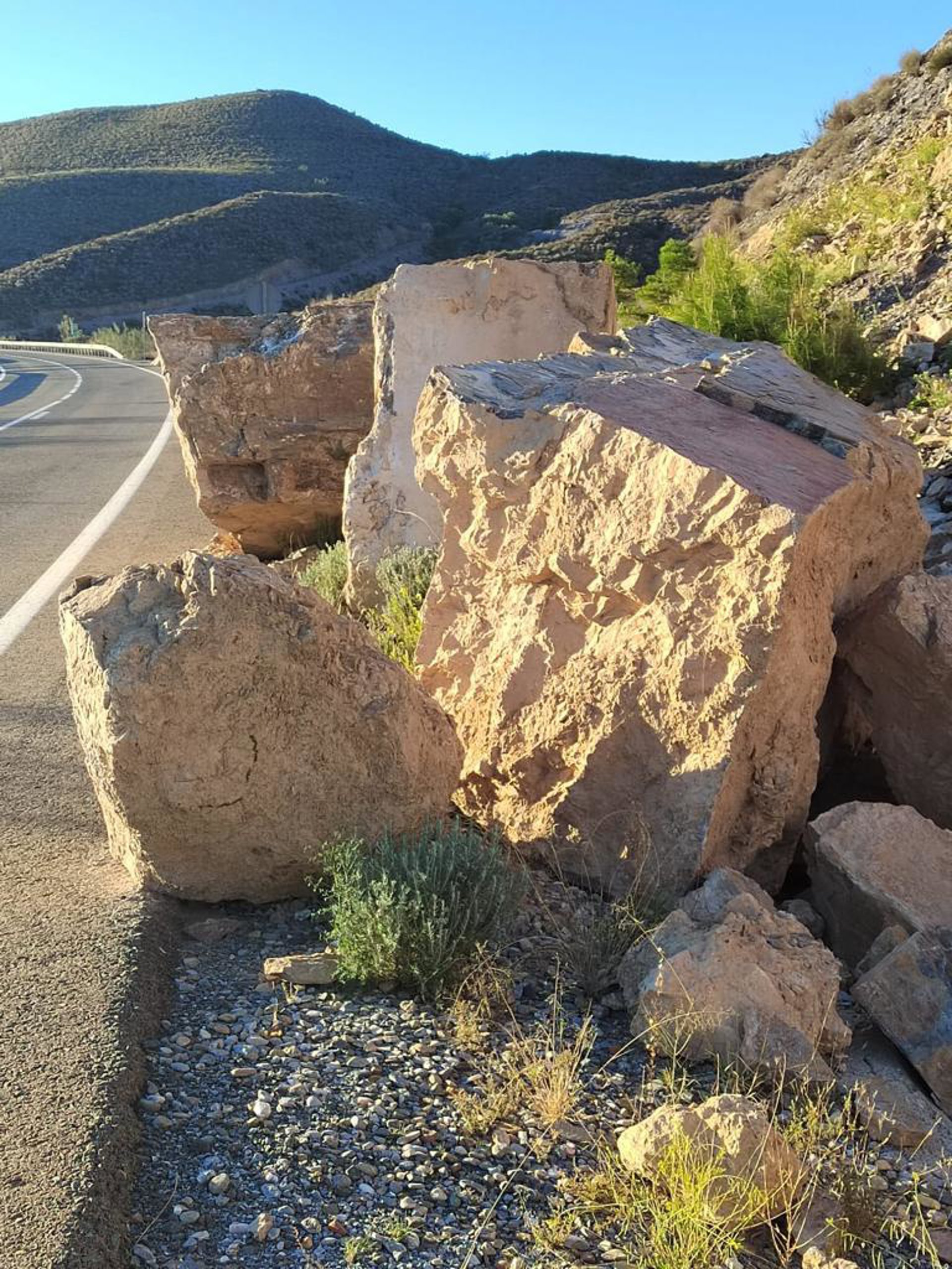 Grandes rocas en el arcén de la carretera almeriense A-1100 entre Cantoria y Albanchez. - PSOE DE ALMERÍA