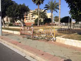 Finalmente, Pedro Díaz ha criticado la situación en que se encuentran "lo que en su momento debieron ser dos parques infantiles, pues se aprecian dos grandes superficies de suelo de goma, con numerosos huecos donde debía haber juegos, de los que emergen arbustos".