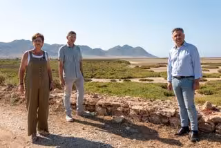 Adriana Valverde, José Luis Sánchez y Antonio Ruano, hoy, en Las Salinas de Cabo de Gata, secas - PSOE