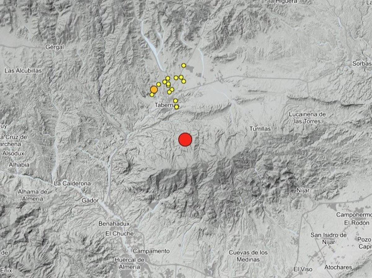 El Instituto Geográfico Nacional (IGN) ha registrado hasta 15 réplicas al terremoto de magnitud 4,3 que se ha producido en la madrugada de este lunes con epicentro en la localidad almeriense de Tabernas, lo que ha derivado en once llamadas a los servicios de emergencias 112 Andalucía: ocho desde Almería, dos desde Granada y una desde Jaén.
