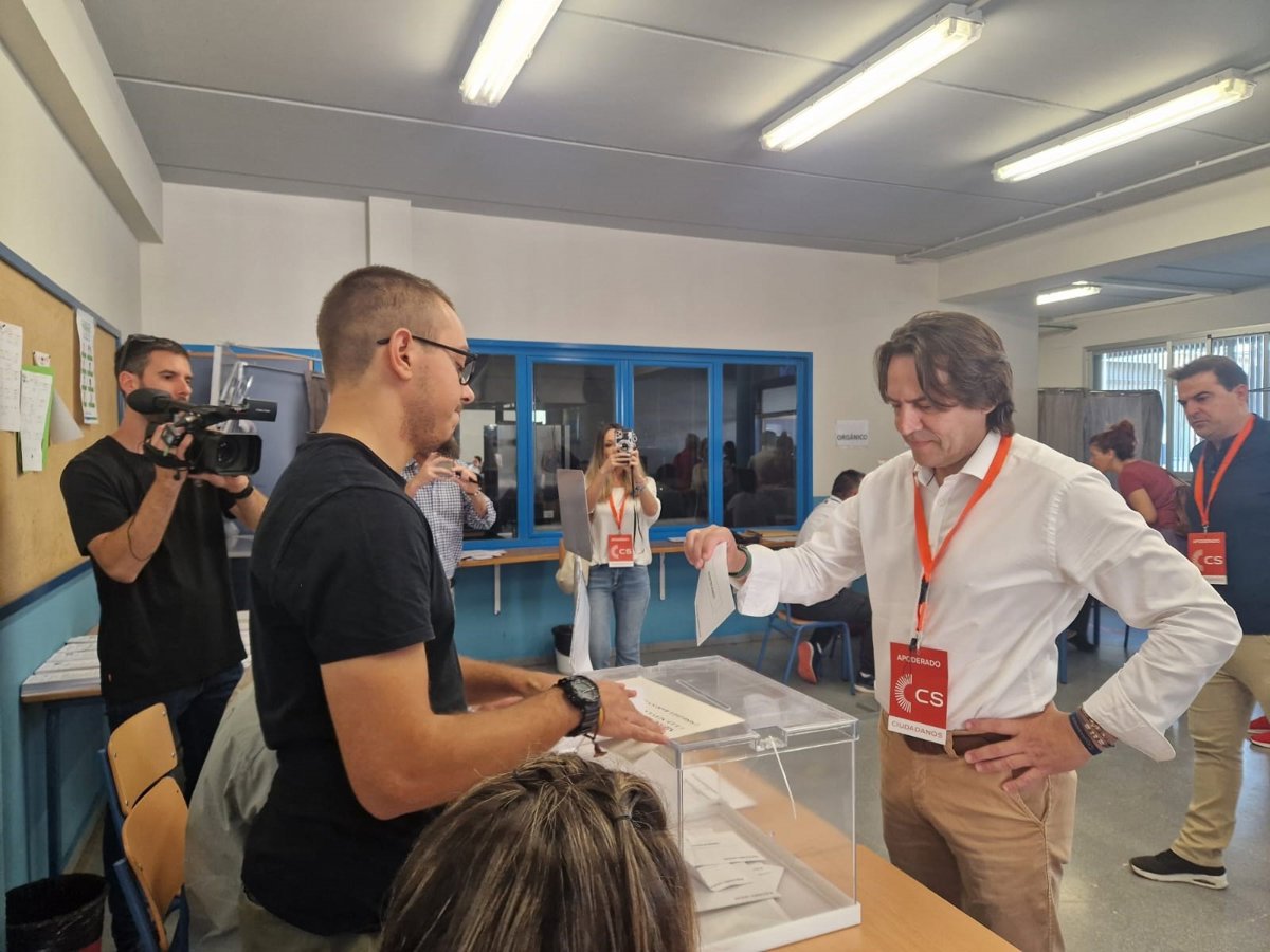 El candidato a la Alcaldía de Almería de Cs, Rafa Burgos, vota en las elecciones municipales del 28M - CS