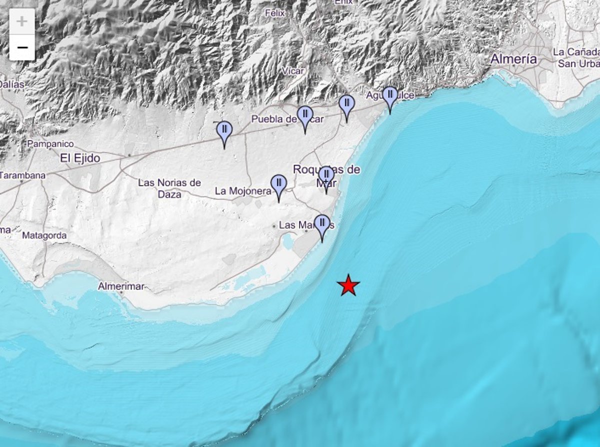 El Instituto Geográfico Nacional (IGN) ha registrado un terremoto de magnitud 2,4 cuyo epicentro se ha localizado frente a las costas de la localidad almeriense de Roquetas de Mar si bien ha podido sentirse también en otros municipios adyacentes como Vícar y La Mojonera.