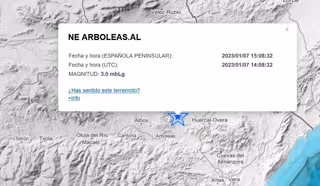 El Instituto Geográfico Nacional (IGN) ha registrado este sábado un terremoto de 3 grados de magnitud en la escala de Richter con epicentro al noreste de la localidad almeriense de Arboleas y que ha sido sentido en varios municipios de la provincia sin incidencias.